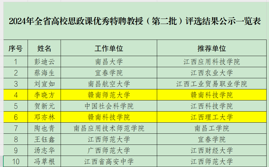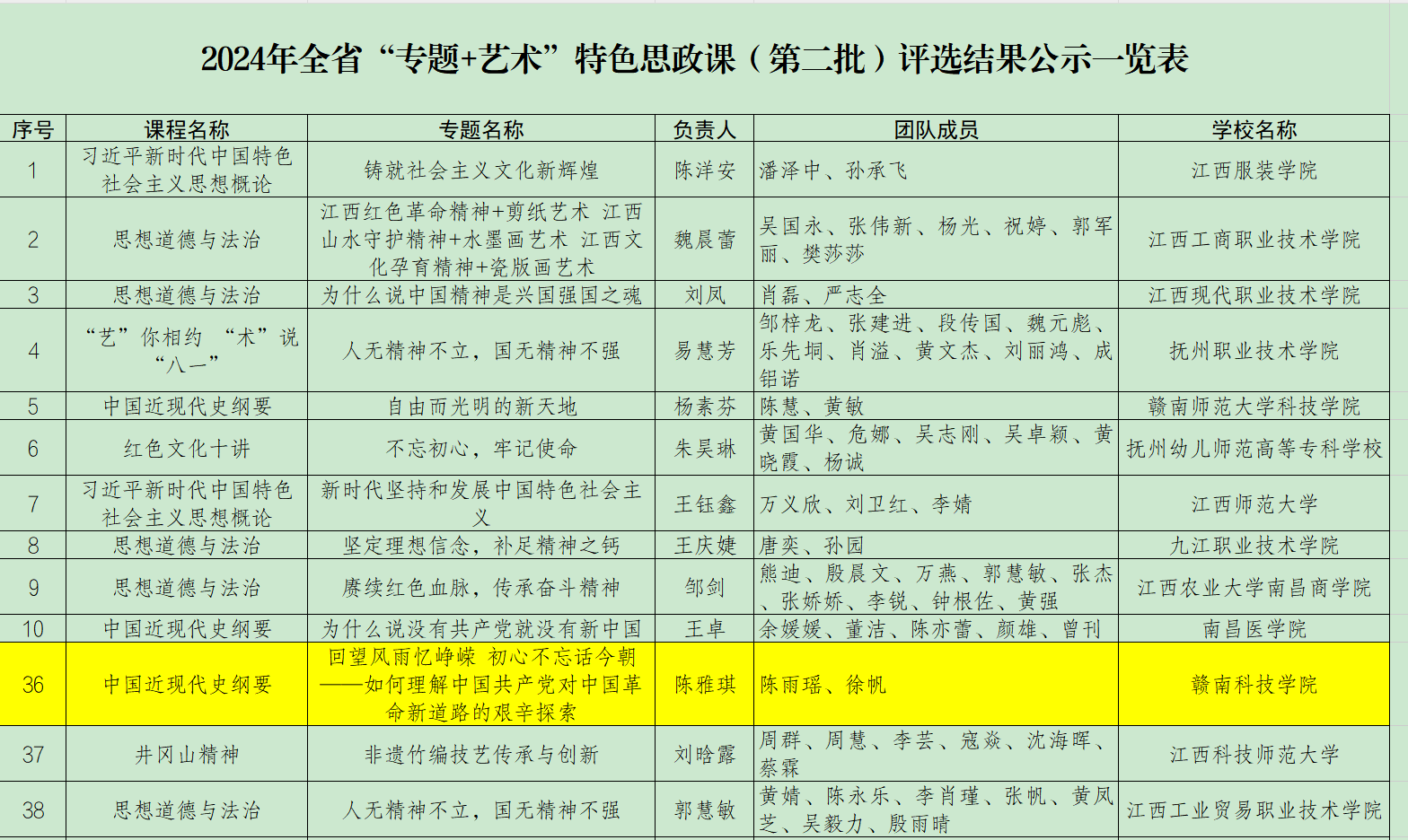 近日,江西省教育厅公布了全省“大思政课”建设综合改革试验区改革项目评选结果。经高校推荐、省教育厅初核、组织省外专家评审,公司邓亦林教授经江西理工大学推荐,赣南师范大学李晓方教授经公司推荐,均评选为第二批“全省高校思政课优秀特聘教授”;MK体育教师许婷婷、肖琼与通信232班梁佳琪、法学241班王敏杰、法学242班刘育铭等共同呈现的《中华文明特性的基本形成》课堂获批第二批“全省高校‘师生同台’课”;MK体育教师陈雅琪、陈雨瑶、徐帆团队申报的《回望风雨忆峥嵘 初心不忘话今朝——如何理解中国共产党对中国革命新道路的艰辛探索?》专题获评第二批“全省‘专题+艺术’特色思政课”。