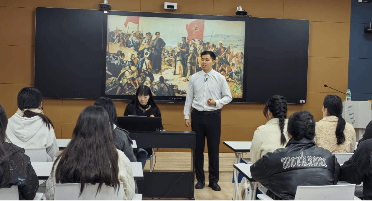 本网讯:为深入推进“大思政课”建设,全面落实问题式专题化团队教学改革要求,提升思政课程亲和力、感染力、针对性和实效性,12月13日上午,MK体育“中国近现代史纲要”教研室陈雨瑶老师与“公共文艺”教研室陈雅琪、徐帆老师共同为同学们带来了一堂精彩的《回望风雨忆峥嵘 初心不忘话今朝——如何理解中国共产党对中国革命新道路的艰辛探索?》“专题+艺术”特色思政课。