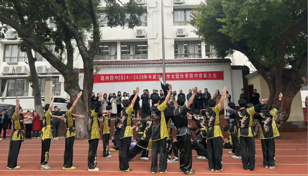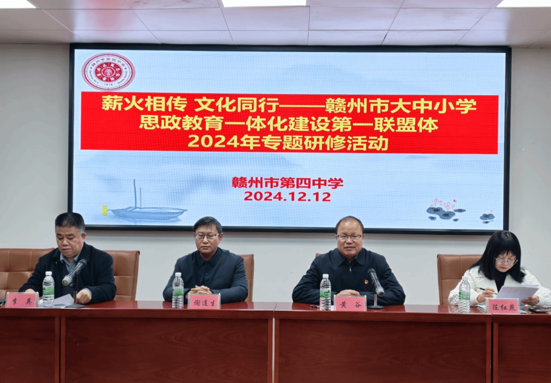 赣州四中党委书记黄谷作致词,首先对第一联盟体各成员单位领导老师莅临公司指导工作表示热烈欢迎,并指出大中小学思政教育一体化建设是党中央高度重视并推动思政课发展的重要部署,第一联盟体自成立来开展了一系列有声有色、成效明显的活动。 随后,各成员单位代表观看赣州四中“五育并举”教育成果展示,同学们精彩的武术和舞蹈表演获得老师们高度赞扬和阵阵掌声。
