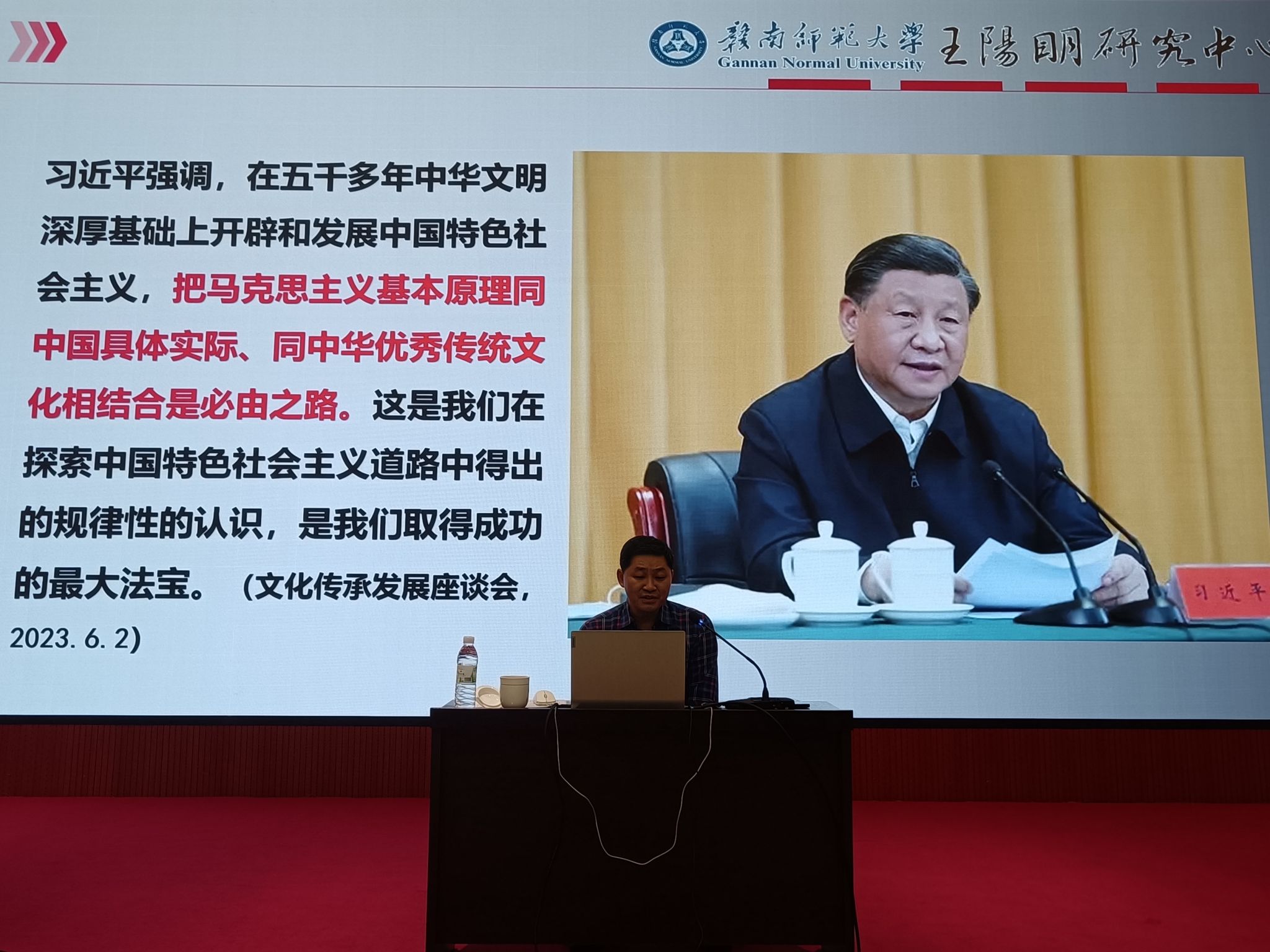 本网讯:11月13日,赣南师范大学历史文化与旅游公司经理李晓方教授应邀莅临公司,在图书馆报告厅开展了以“马克思主义基本原理同中华优秀传统文化相结合——致良知:王阳明及其心学思想”为主题的“一课多师”示范团队教学展示活动。此次活动旨在通过结合《习近平新时代中国特色社会主义思想概论》课程教学,积极探索思政课教学新模式,努力打造思政“金课”。公司部分思政课教师及2024级工商管理、冶金、新能源、数字经济等专业的270余名师生现场聆听。