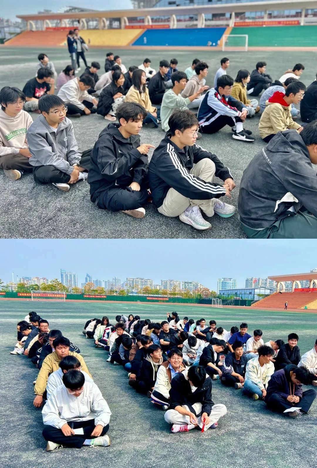 活动尾声进入到感受分享环节,同学们一起坐在台阶上,敞开心扉,分享活动感悟,有成长的惊喜,有快乐的绽放,言语间心灵靠近,共鸣加深。共同见证了同学们的成长与蜕变,从最初的陌生与羞涩,到逐渐熟悉、相互合作,每一位同学都在这个过程中发挥了自己的优势,为团队贡献了力量,也为本次活动画上圆满句号,留下难忘回忆。