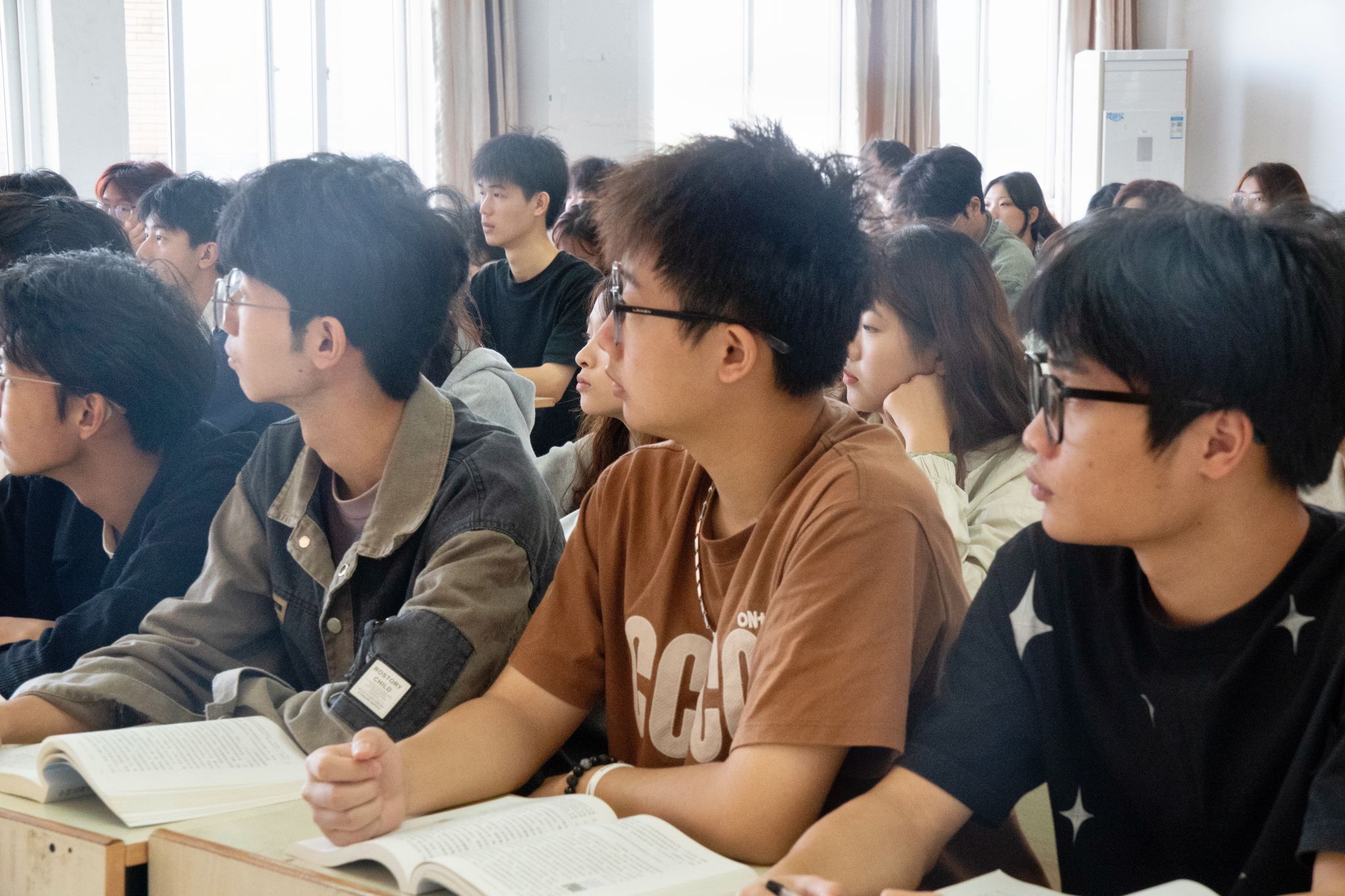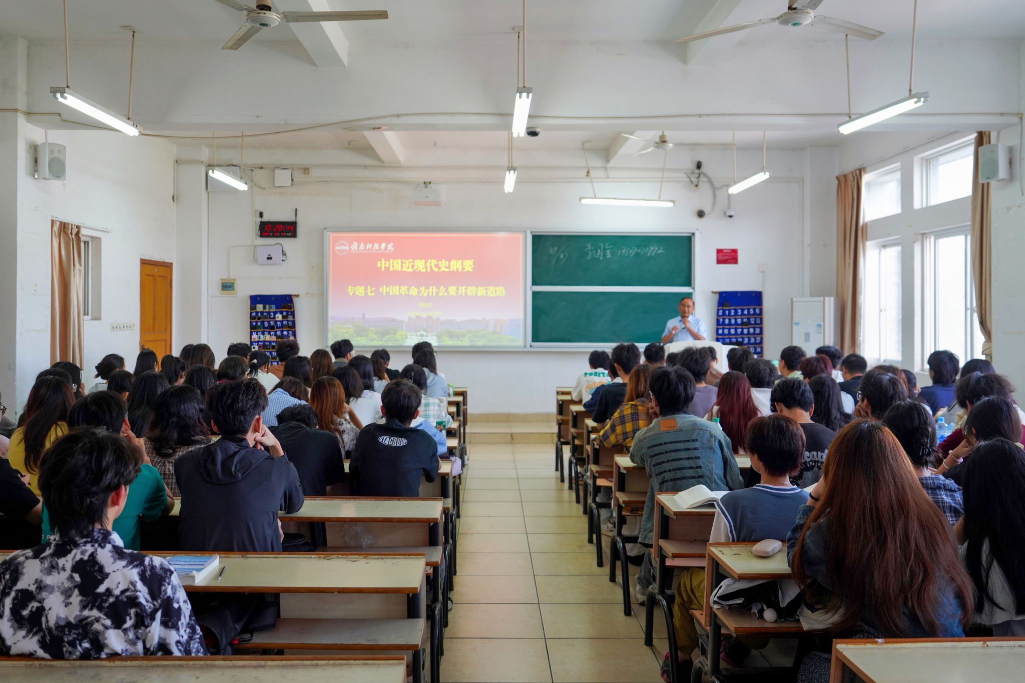 课堂上,李国金从毛泽东诗词鉴赏切入课堂主题,串联讲解了毛泽东同志的《西江月·井冈山》《水调歌头·重上井冈山》《采桑子·重阳》《菩萨蛮·大柏地》《清平乐·会昌》等五首经典诗词。讲授了大革命失败后,面对白色恐怖,中国共产党人毅然举起独立领导武装斗争和土地革命的旗帜,探索革命新道路,建立了中央革命根据地,使身陷苦难深渊的中国人民看到了光明和希望。李国金强调,同学们要坚定理想信念,弘扬井冈山精神、苏区精神和长征精神,坚持马克思主义中国化,以人民为中心,坚持群众路线,树牢群众观点,坚定信心,乐观向上,攻坚克难。李国金结合中国近现代史上的重大事件和关键节点,通过生动的案例和丰富的史料,展开了一幅波澜壮阔的历史画卷,让同学们从诗词中了解到中国共产党在土地革命战争时期的艰辛历程,明白革命烈士用鲜血和生命铸就了伟大的井冈山精神、苏区精神、长征精神。这些伟大革命精神跨越时空、永不过时,是砥砺我们不忘初心、牢记使命的不竭精神动力。
