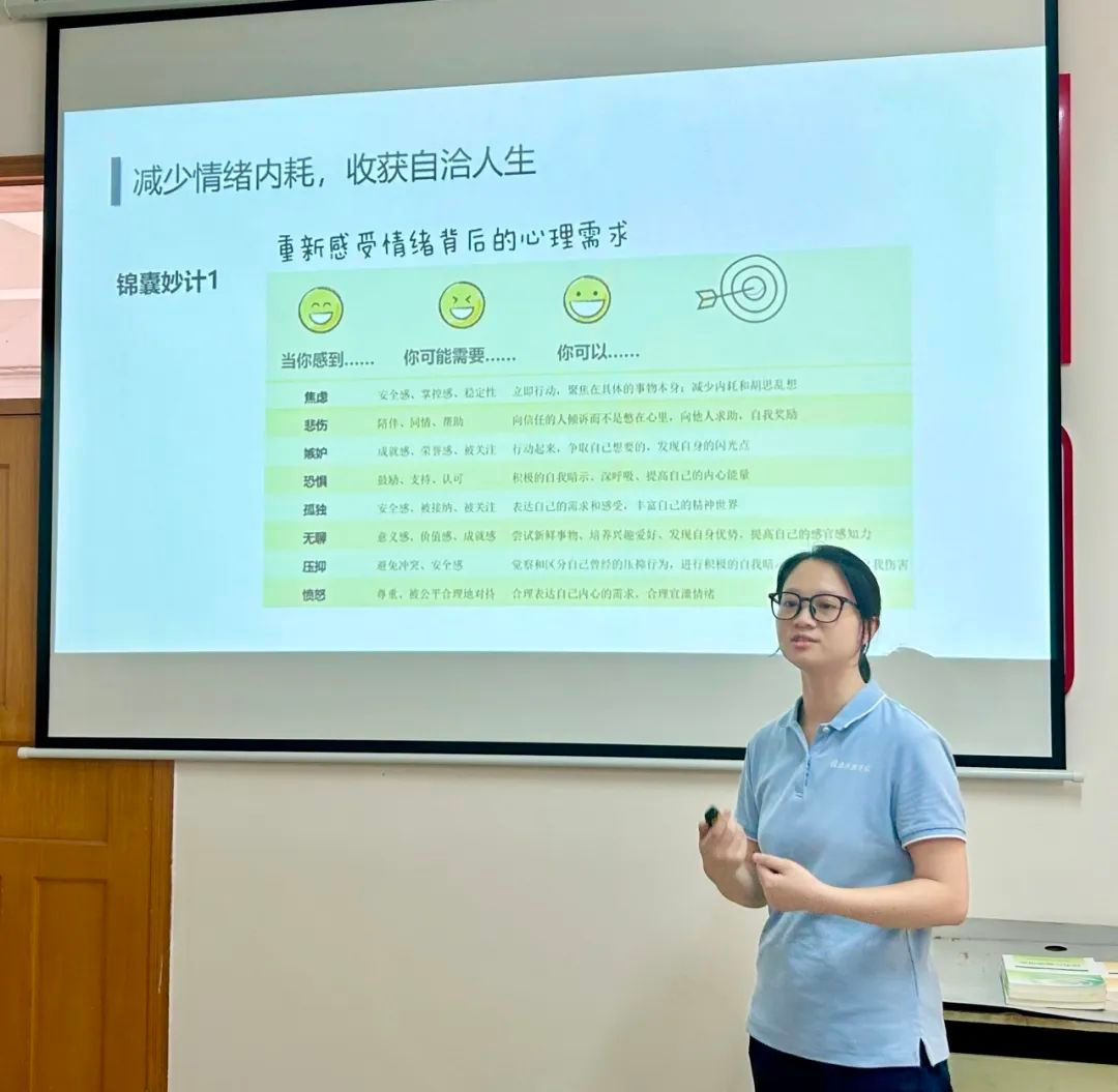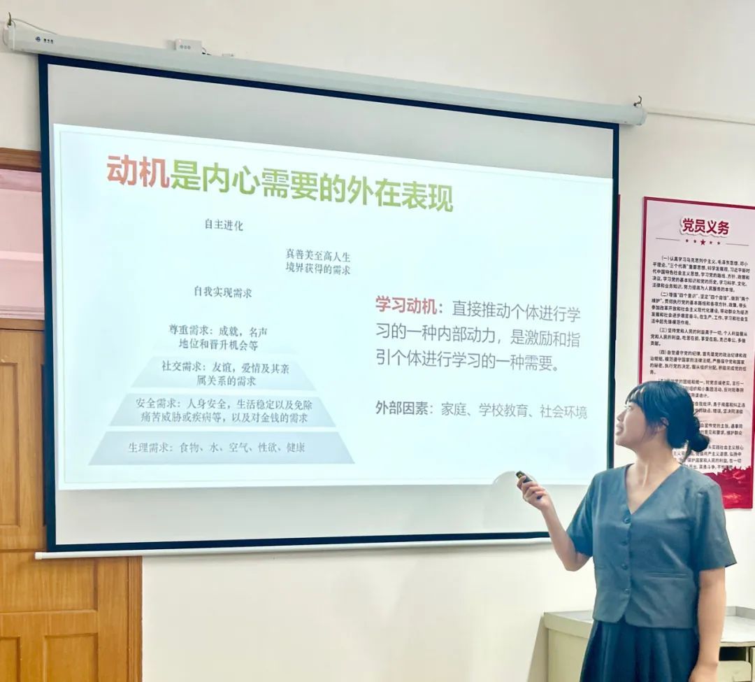 第二个环节是教学展示。刘运梅老师围绕“情绪管理”主题,通过形式多样的教学手段讲授了觉察情绪、避免情绪内耗及调整心态的内容与方法;古鹓媛老师围绕“学习心理”主题,以学习动机理论及现实应用为切入点,分享了破解学习内耗的方法。