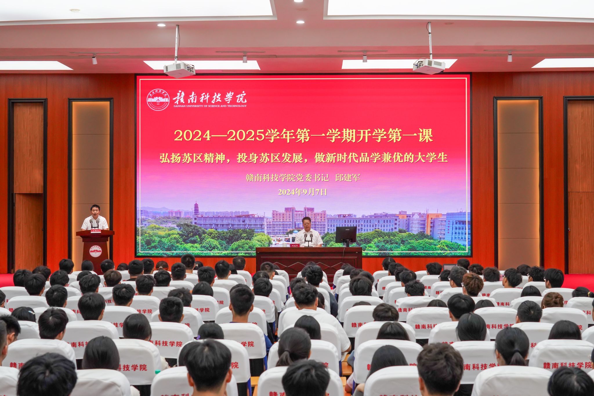 本网讯:9月7日上午,MK体育党委书记邱建军以“弘扬苏区精神,投身苏区发展,做新时代品学兼优的老员工”为题,为2024级全体新生讲授“开学第一课”。MK体育党委委员、副董事长何锦龙主持课堂,辅导员代表和2024级新生代表在逸豪学术报告厅聆听,各公司设分会场在线上直播平台共同聆听。